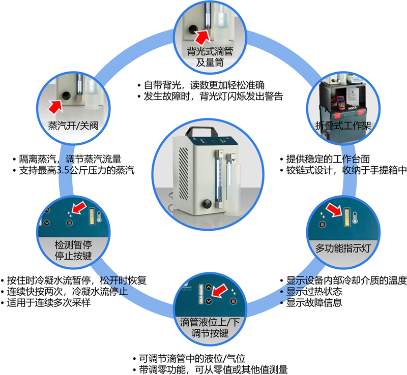 •风冷式设备无需额外的冷却用水,自带过热保护、调零功能、背光照明、折叠架以及轮式手提箱等功能