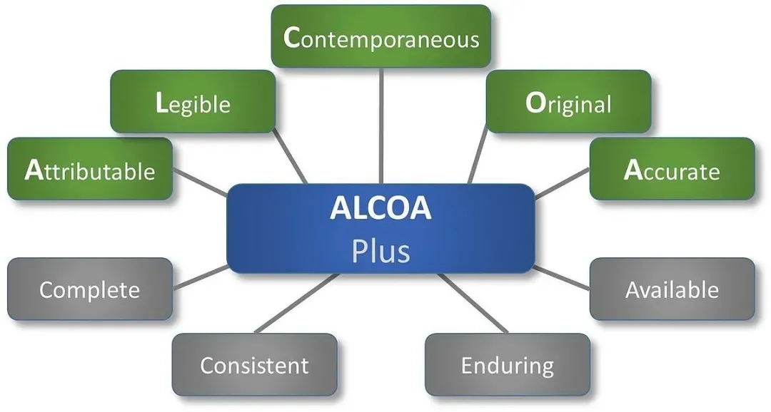 目前被公认的数据完整性的原则是ALCOA+原则,即ALOCA+CCEA原则,其具体释义如下: