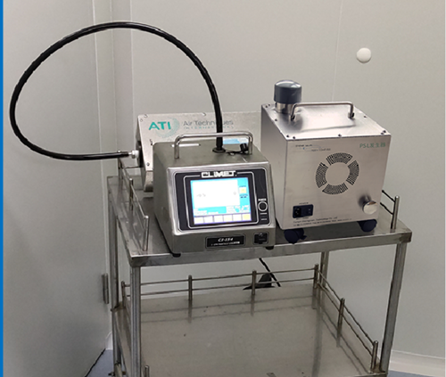 b) 使用粒径小于1μm的气溶胶制剂发烟,使测试环境中的初始粒子浓度提高到目标洁净度程度的10倍或100倍,记录时间(t10n 或 t100n)
