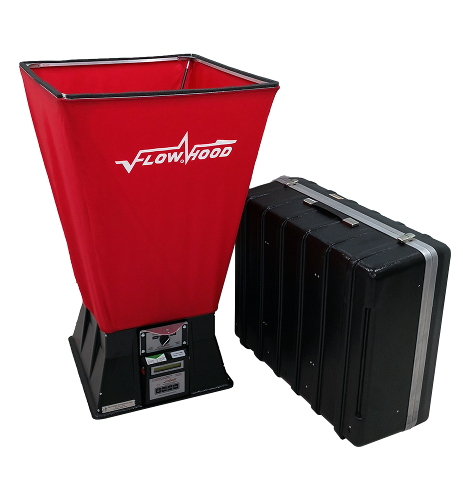 由于送风口局部气流的扰动和喷射速度产生的效应,建议采用风量罩捕集所有从终端过滤器或送风散流器流出的空气。可以用配有计量计的风罩,或是用风量罩出风的风速乘以有效面积。风量罩的固定位置应该能完全覆盖住过滤器或散流器,其表面应该靠在一个平坦的表面上,防止空气因旁流产生不精确的读数。如采用风量罩测量各个终端过滤器或送风散流器的风量,则应该在风量罩的排风端直接测量。