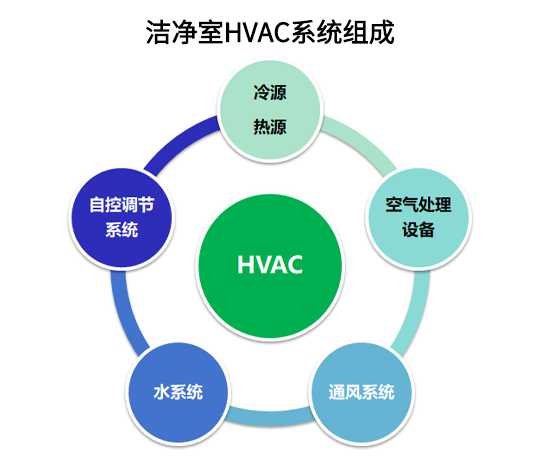 洁净室作为空气悬浮粒子受控的房间,在建造和使用时除了需要减少室内引入,产生及滞留粒子之外,还需要对温度、湿度、压差等按要求进行控制,而实现上述参数人为可控的关键便是引入HVAC(供热通风与空气调节)系统,也就是我们常说的洁净室空调系统。