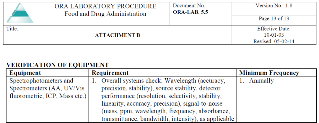 最小校正时间间隔的要求应该依从美国FDA法规,这个要求对于ATI光度计可以通过ORA-LAB 5.5编号的FDA对实验室设备要求的描述中的第13页找到。