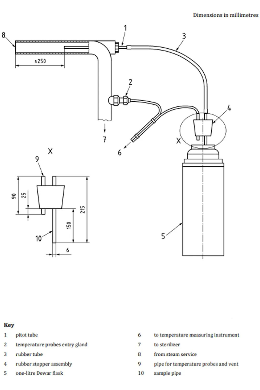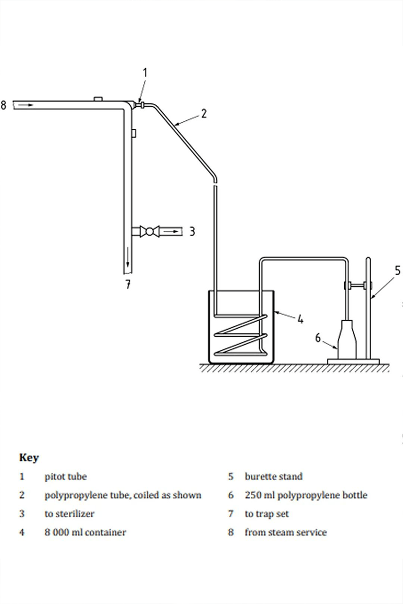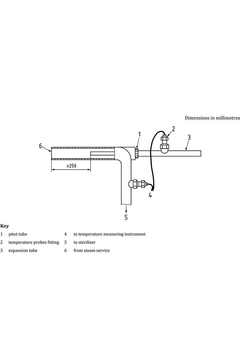 2.温度探头应当放置在蒸汽管的几何中心位置。在蒸汽管里插入一个合适大小的皮托管。