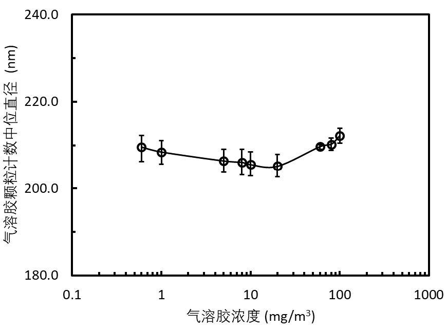 如上图所示:气溶胶的计数中位直径随着气溶胶浓度的变化。当使用多个这样的标准来校准光度计时,尽管气溶胶粒径分布的变化很小,但肯定会在光度计校准中引入误差;然而,这种微小变化为验证光度计性能提供了足够的余地。